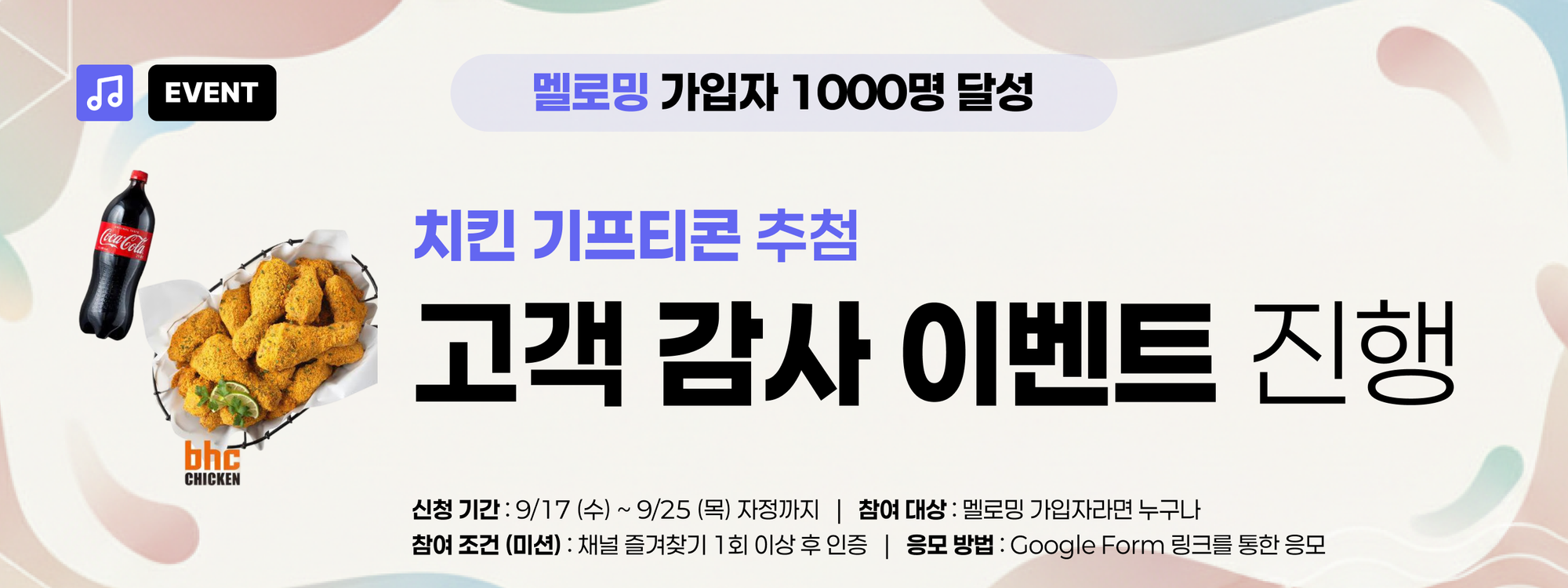 🎉 멜로밍 1000명 돌파! 감사 치킨 이벤트 🍗