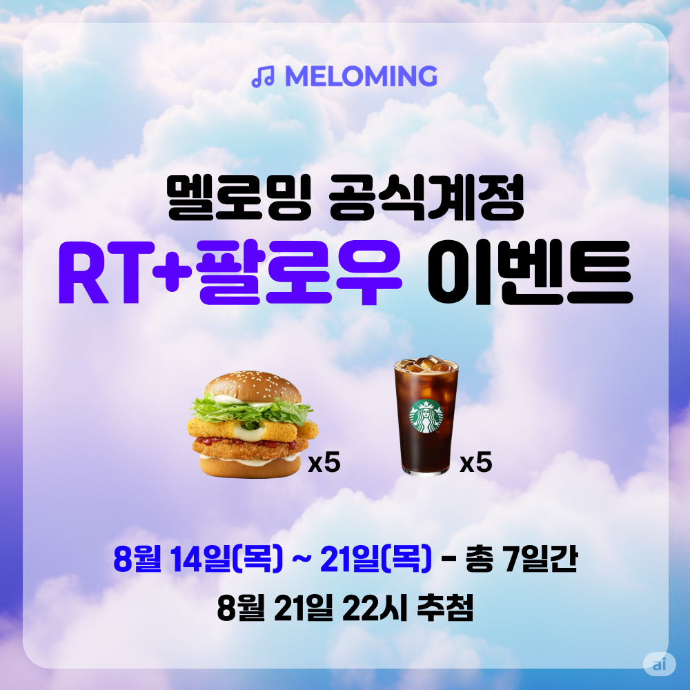 멜로밍을 사랑해주시는 유저 여러분들과 더 가까이 소통하고, 멜로밍 공식계정을 더 활성화하기 위해 'X(트위터) 공식계정 RT+팔로우 이벤트' 를 진행합니다.