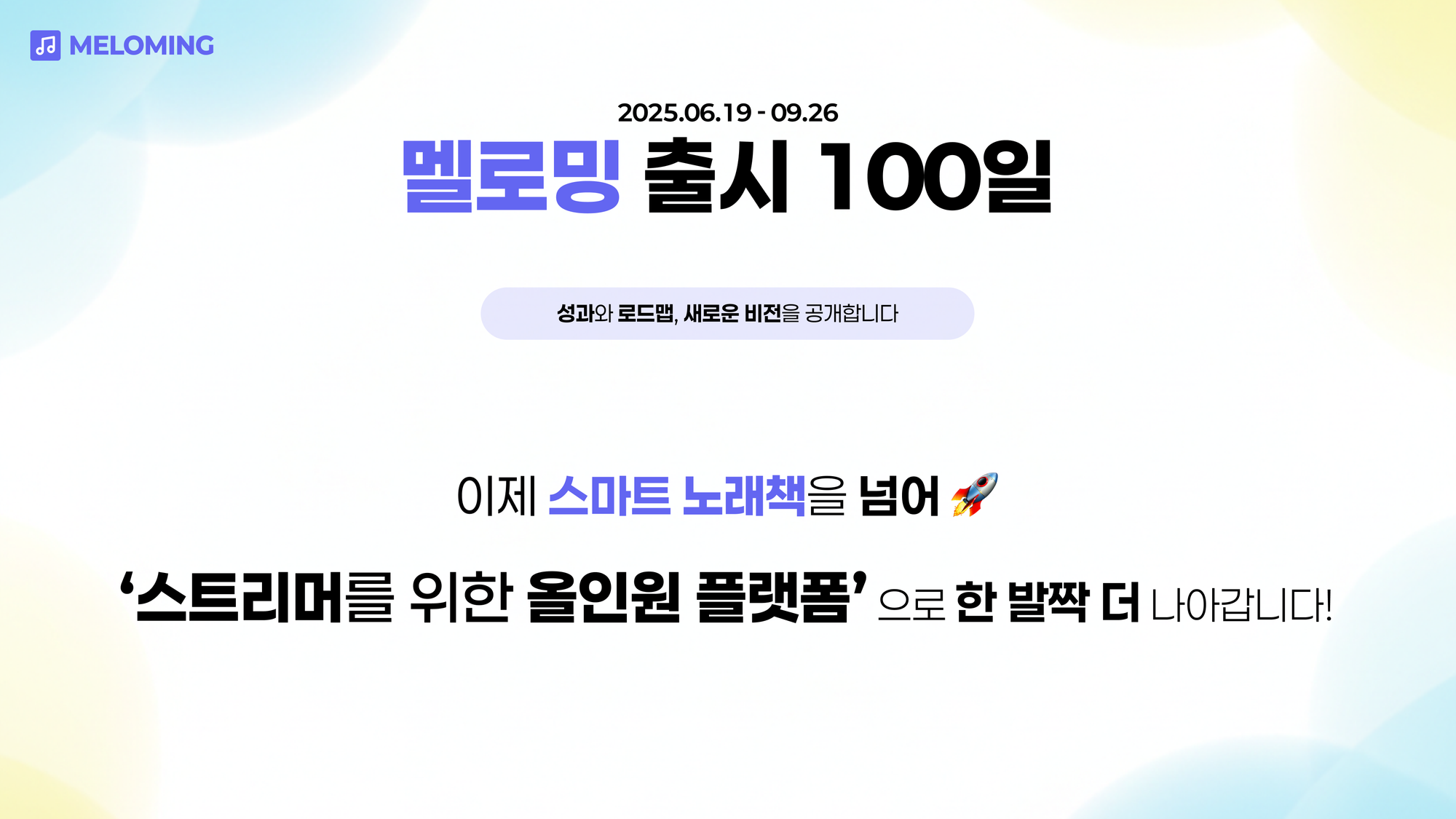 그리고 오늘, 멜로밍은 지금까지 쌓아온 데이터와 스트리머 생태계에 대한 깊은 이해를 바탕으로, '스마트 노래책' 서비스를 넘어 '스트리머를 위한 올인원 플랫폼' 으로의 도약을 선언합니다!