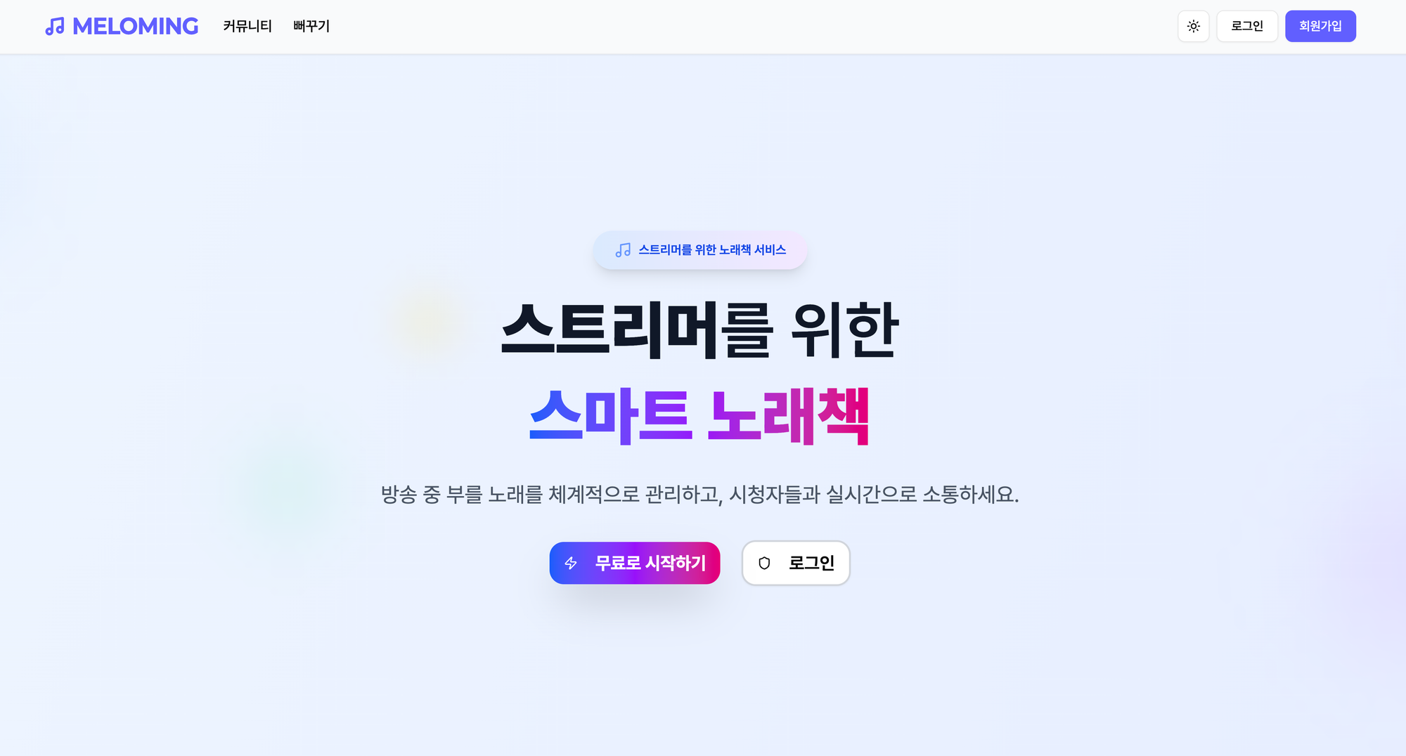 서비스 이용 중 궁금한 점이나 개선 아이디어, 버그 제보는 언제든지 멜로밍 디스코드 채널로 편하게 알려주세요! 여러분의 목소리가 멜로밍을 성장시킵니다.