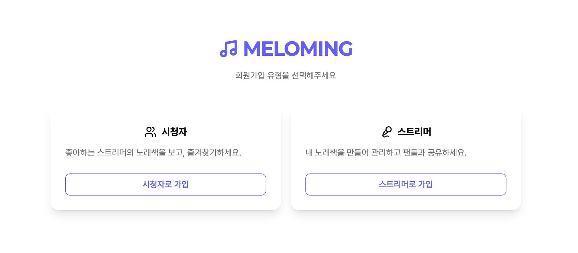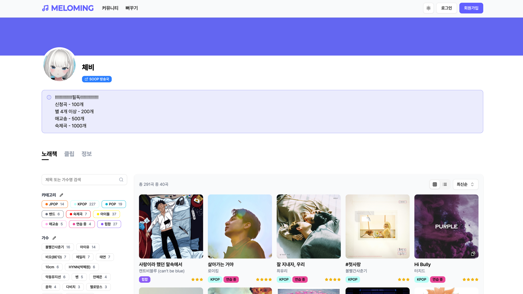 이제 시청자분들도 멜로밍의 회원이 될 수 있어요! 앞으로 추가될 채널 팔로우와 곡 즐겨찾기 기능을 통해 멜로밍에서 다양한 기능을 즐겨보세요.
