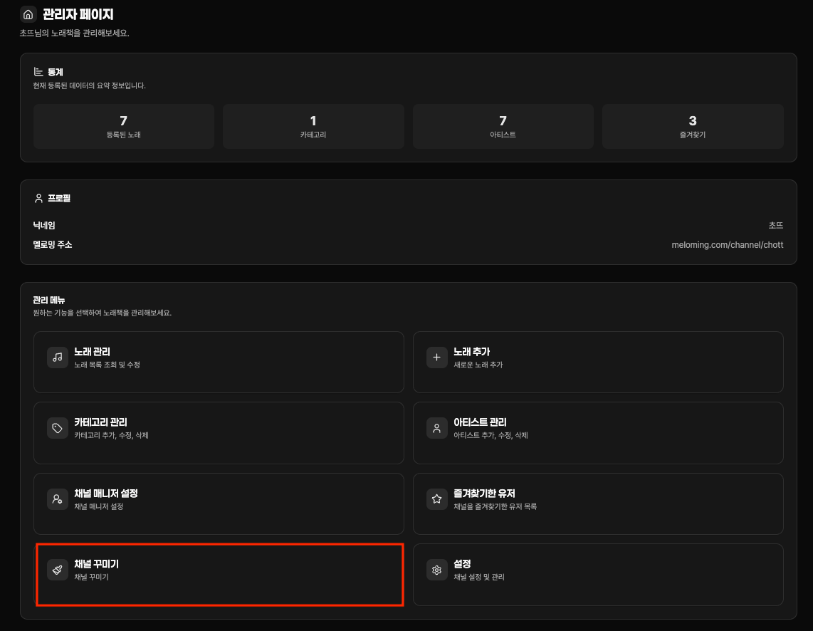 - 채널 꾸미기 메뉴 선택
