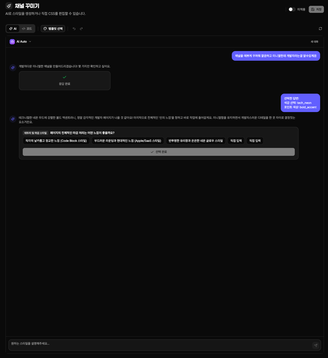 AI 채널 커스텀 테마 생성기는