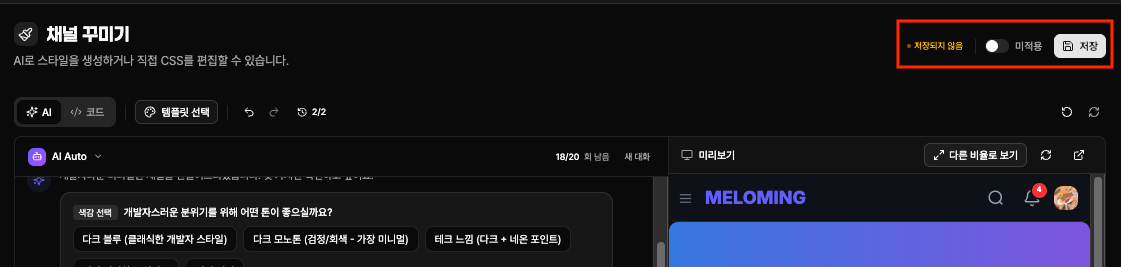 이번 업데이트에서 「AI 채널 커스텀 테마 생성기」를 새롭게 선보입니다.