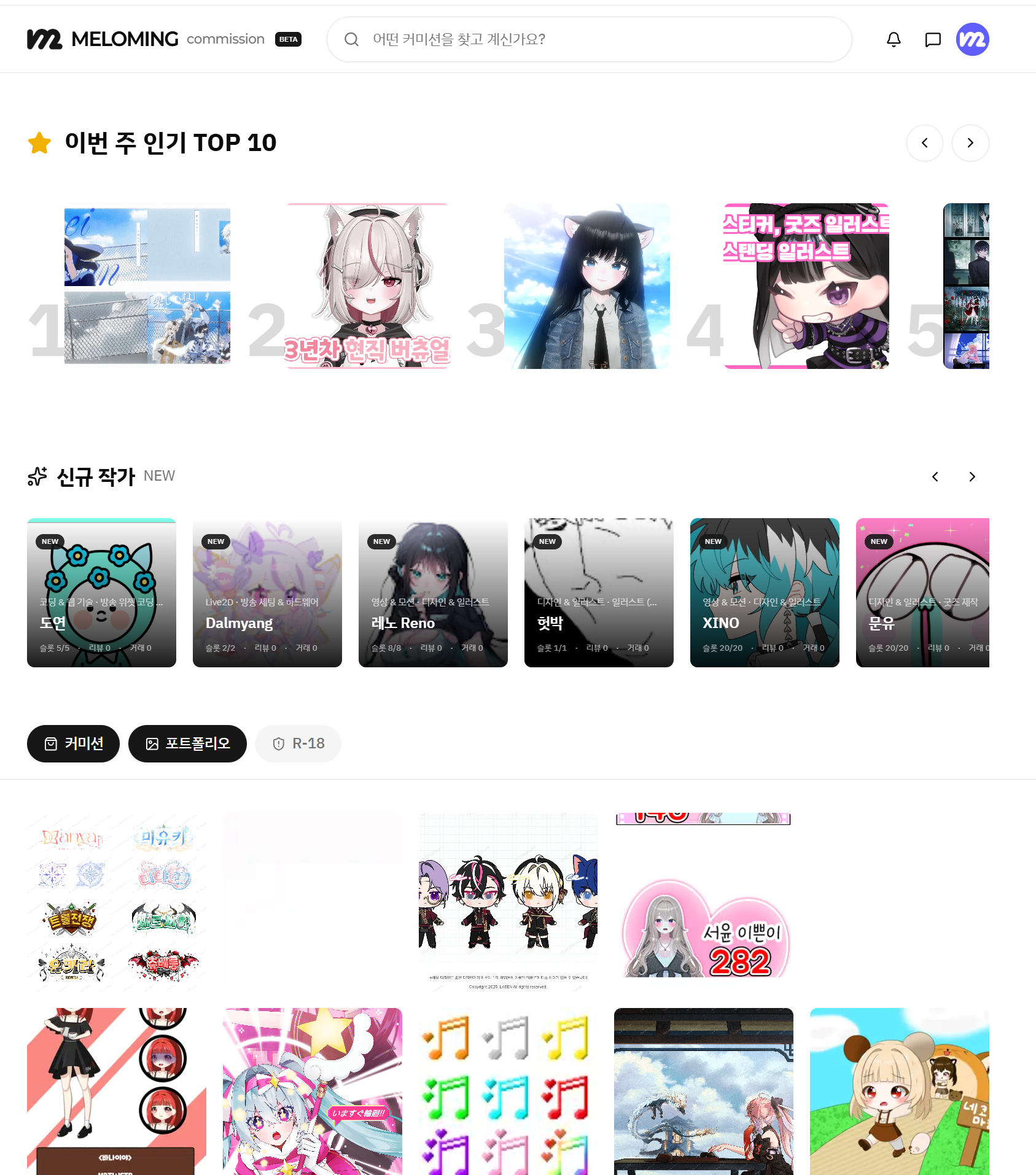 이 목표 실현시키기 위해 저희는 버추얼 친화적, '수수료 최저가' 커미션 플렛폼 사이트, "멜로밍 커미션"을 드디어 베타 오픈을하게 되었습니다!