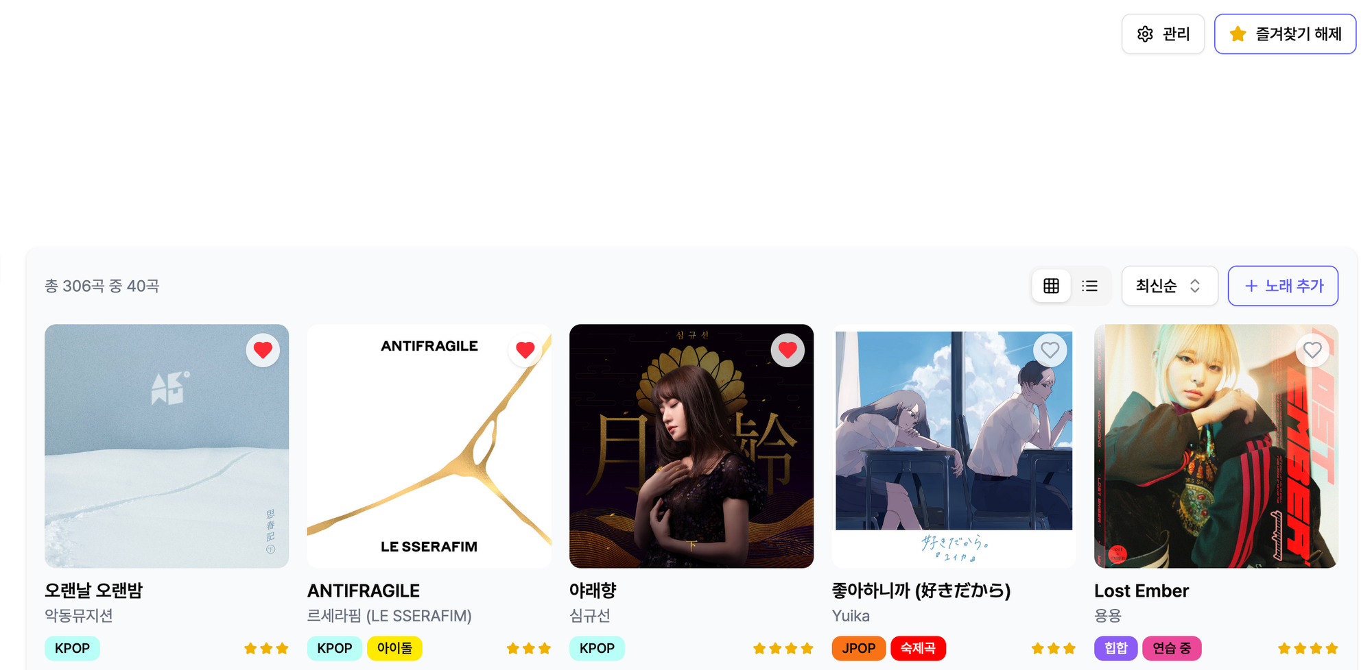 5. 채널/노래 즐겨찾기 기능 추가