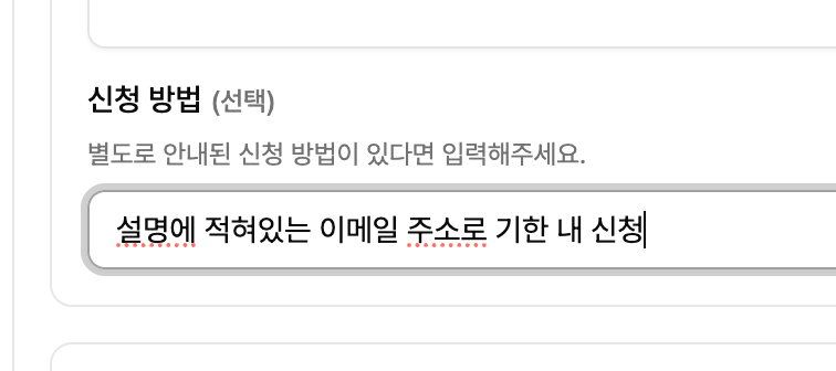 또한 신청 방법을 별도로 안내해야할 경우 직접 입력할 수 있도록 항목이 추가되었습니다.