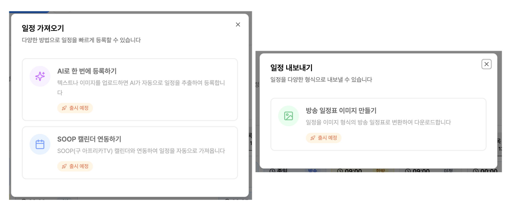이외에 SOOP 캘린더 기능과의 연동도 개발 중이니 조금만 기다려주세요!