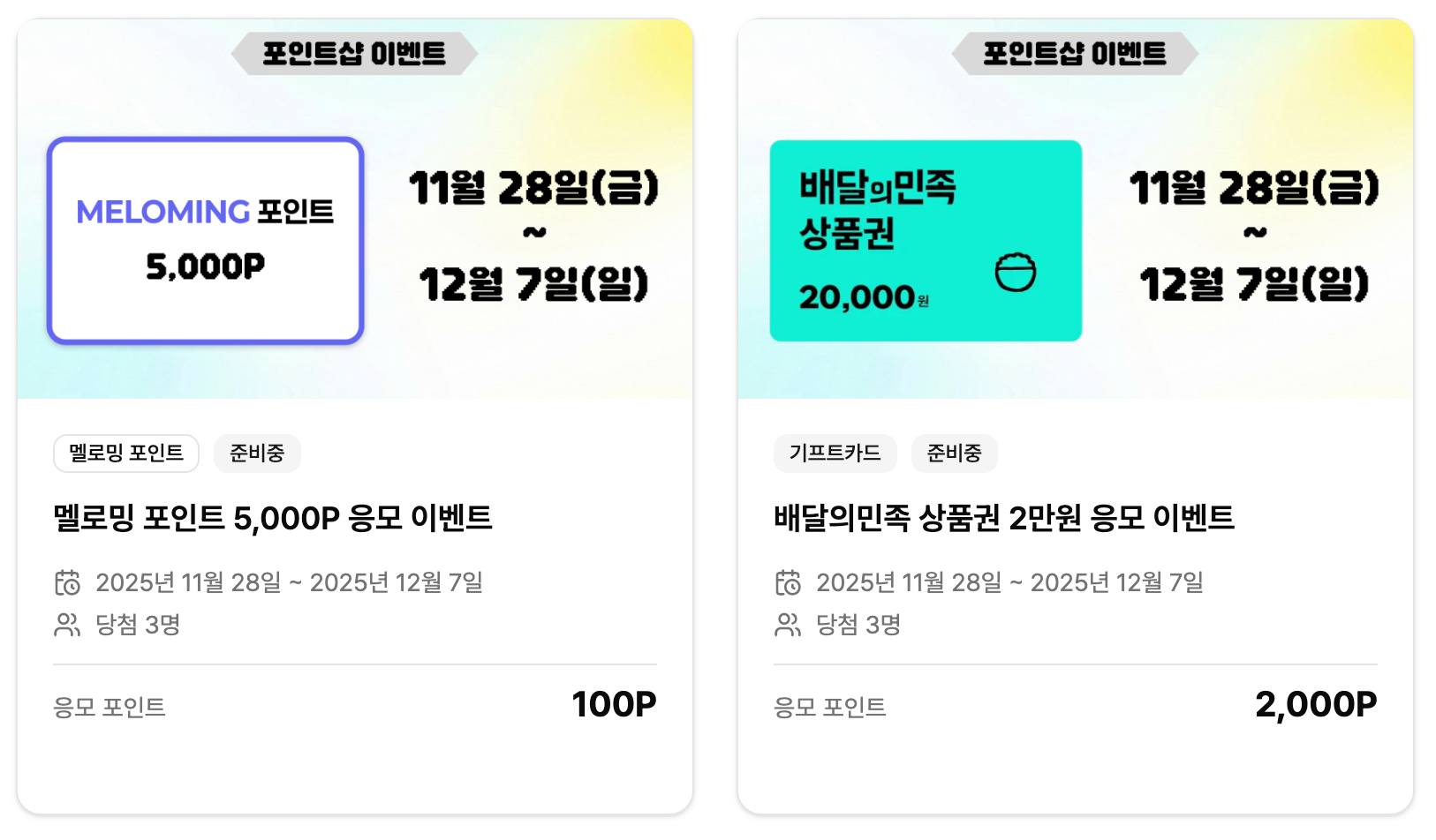 - 포인트 상품 : 5,000P (3명 당첨)